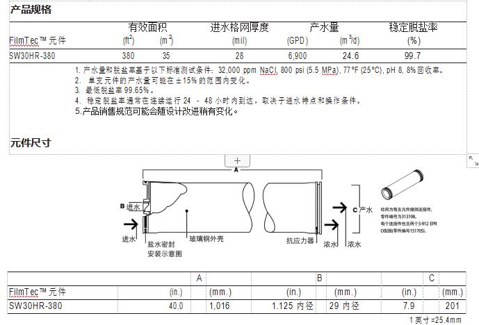 FilmTec™ SW30HR-380 膜元件