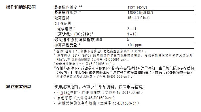 • FilmTec™ SW30HR-380 元件在制造過程中沒有像其他元件制造商那樣采用氧化 性的后處理工藝提高短時的初始性能,因而能在長期運行中一直保持高性能。 這是為什么 FilmTec™ 膜元件比其他品牌經(jīng)久耐用,可在更寬的 pH 范圍(1~13) 內(nèi)進行更有效的化學清洗的關(guān)鍵原因之一。
