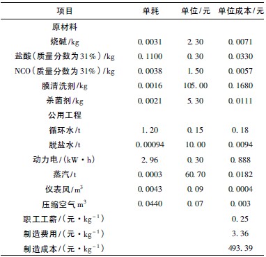 (7) 母液膜處理裝置運(yùn)行成本見(jiàn)表3。