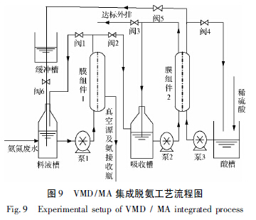 充分考慮VMD 與MA 脫氨工藝的優(yōu)缺點(diǎn),構(gòu)建了VMD-MA 集成膜脫氨系統(tǒng),工藝流程圖如圖9所示。