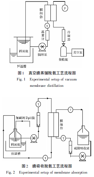 若將VMD 和MA 結(jié)合起來,有望實(shí)現(xiàn)高氨氮廢水的高效脫氨并解決廢吸收液的二次處置難題。本文在實(shí)驗(yàn)室規(guī)模下對VMD 和MA 脫除水溶液中的氨氮進(jìn)行了研究,并建立了一套全新的高效處理高氨氮廢水的集成膜工藝體系。