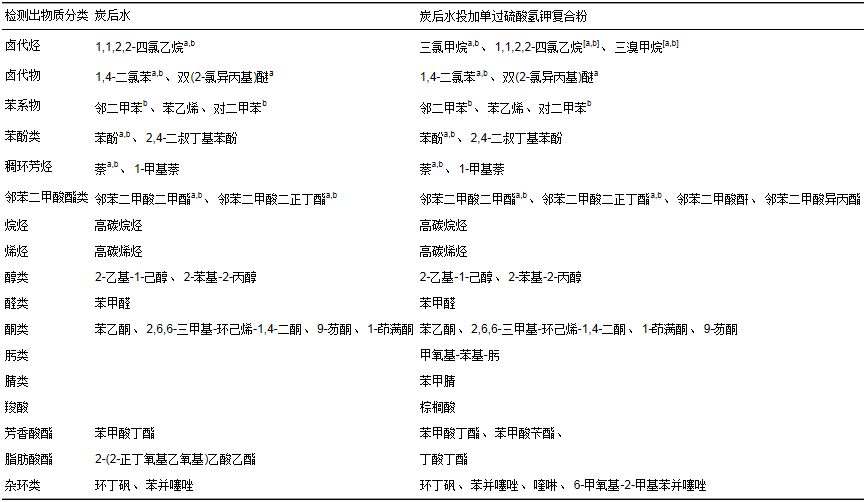 表 2 炭后水投加單過硫酸氫鉀復(fù)合粉前后GC/MS分析結(jié)果